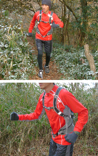 先 日、箱根の山を5時間程走ってきました。霜柱がおおう寒風の強い日です。ロングのインナーの上に着て走りました。やはり大きな動きでも気持ちよくスムーズ にさばけます。かなり汗をかいている筈、それでも重たさを感じませんでした。バックパックのストレスも無く快適で、発汗性の良さを感じました。