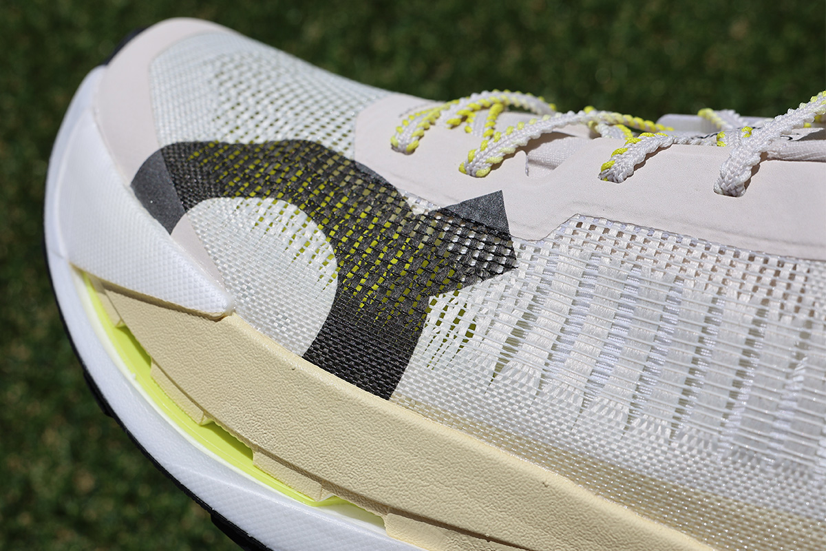 アッパーには通気性と耐久性に優れたLenoメッシュを採用。部分ごとに編み構造を変えることで、足の可動域は確保しつつ必要なサポートを的確に提供。濡れた状態からの速乾性にも優れており、長時間のトレイルで快適性をキープします。