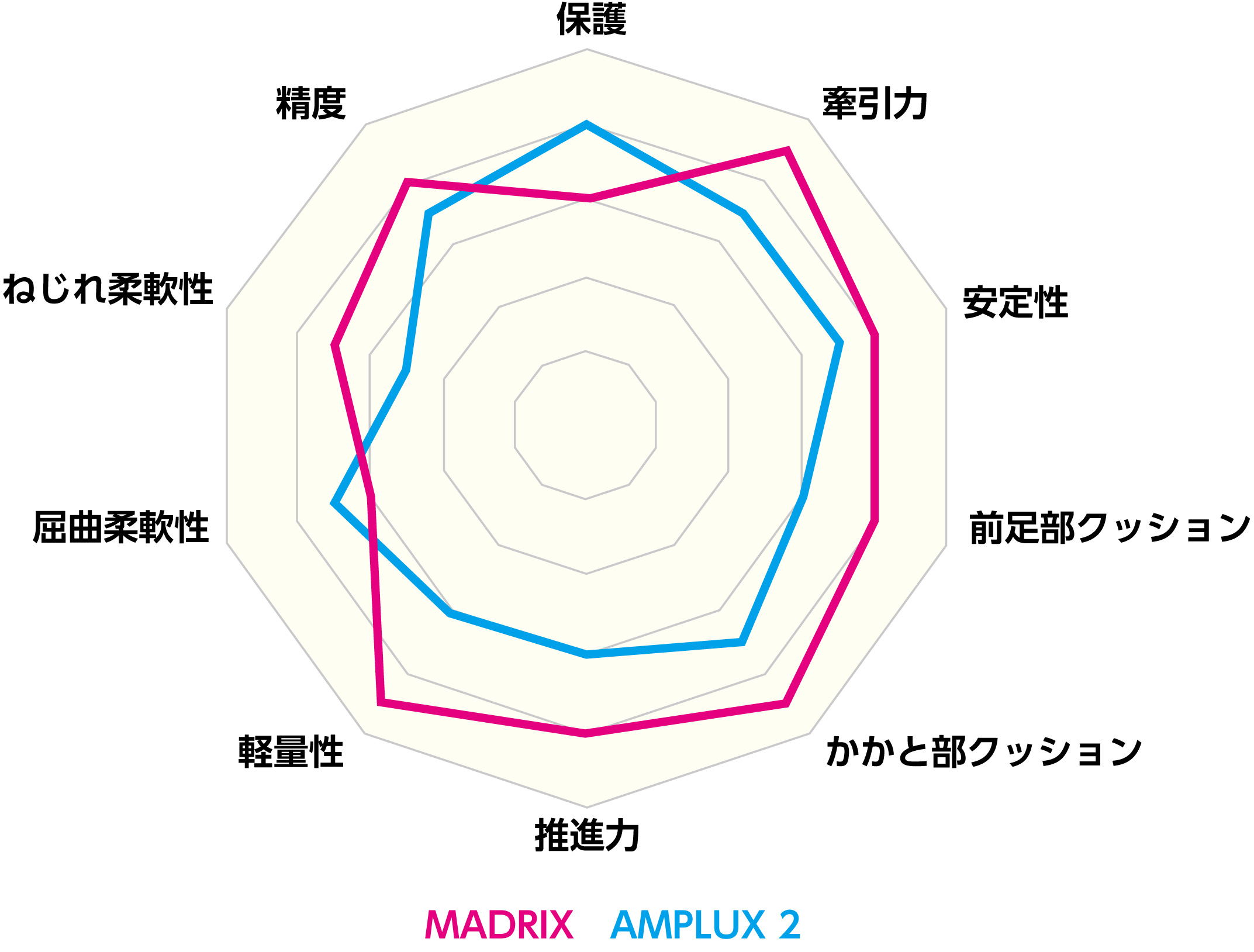 アッパーには伸縮性としなやかさを併せ持つ素材を採用し、「MADRIX」と同様のREPTEX Sportによるシューズの立体形状に沿った補強を施しています。