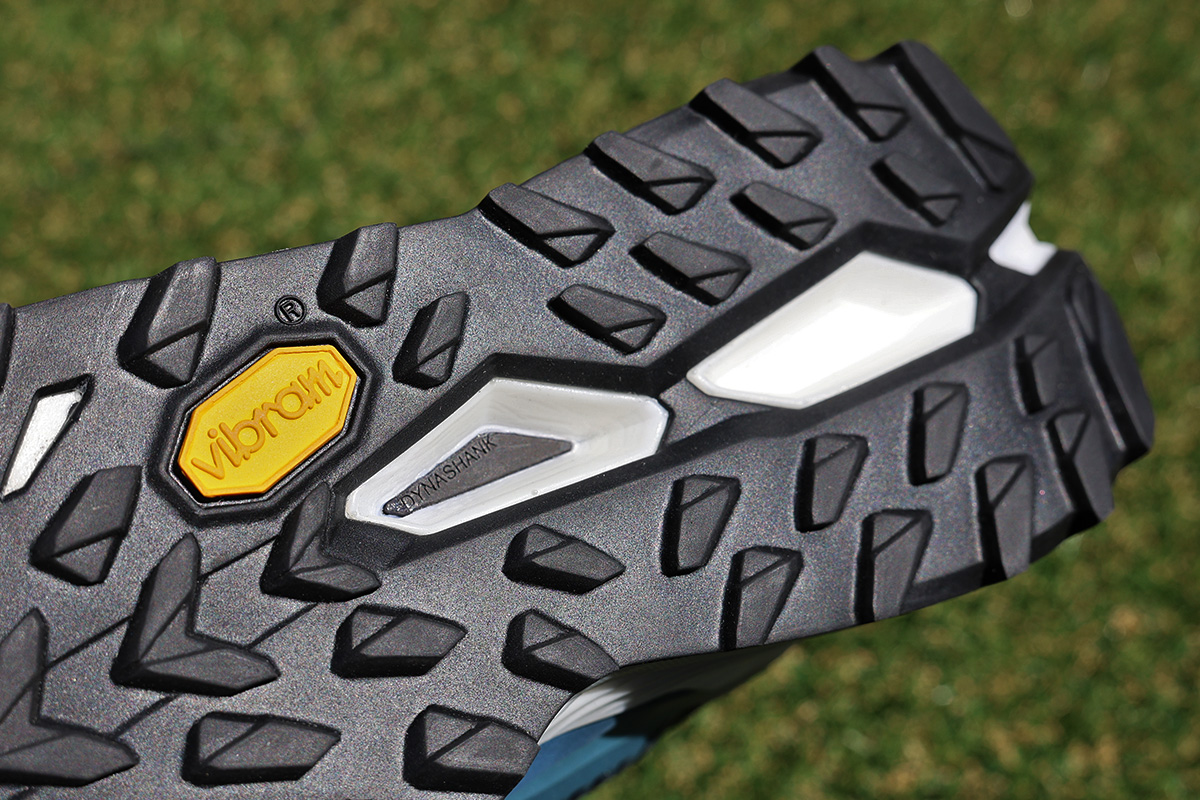 アウトソールにはVIBRAM® TRAC PULSE Megagripラバーを採用。軽量化とグリップ力のバランスに優れたラグパターンにより、濡れた岩場や泥濘、乾いた砂利道など、様々なトレイル環境で確実なトラクションと安定した走行性能を提供します。