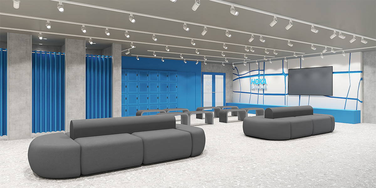 2階には、HOKAのランニングコミュニティ「HOKA RUN CLUB」のためのコミュニティスペースを設置。イベントやランナー同士の交流の場として活用される予定です。