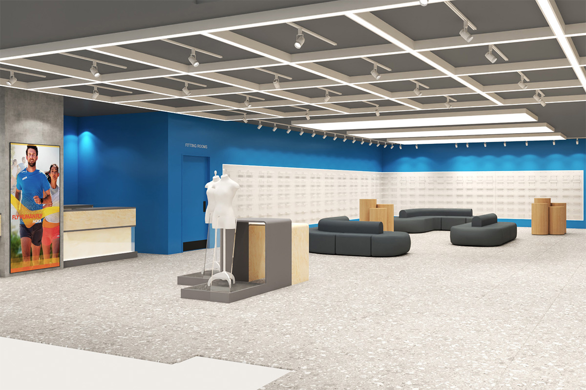 注力商品とライフスタイル、パフォーマンス、ランニングコミュニティースペースと3つのフロア構成で、最新のロードランニングシューズとアパレル、トレイルランニングシューズ、アウトドアシューズとアパレル、ライフスタイル、リカバリーサンダルを展開。