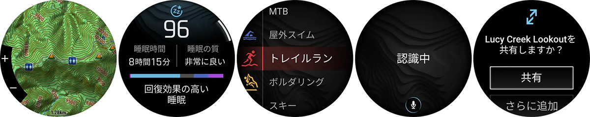 ・センサー:第5世代光学式心拍計、血中酸素トラッキング※、コンパス、ジャイロセンサー、温度計、気圧高度計など