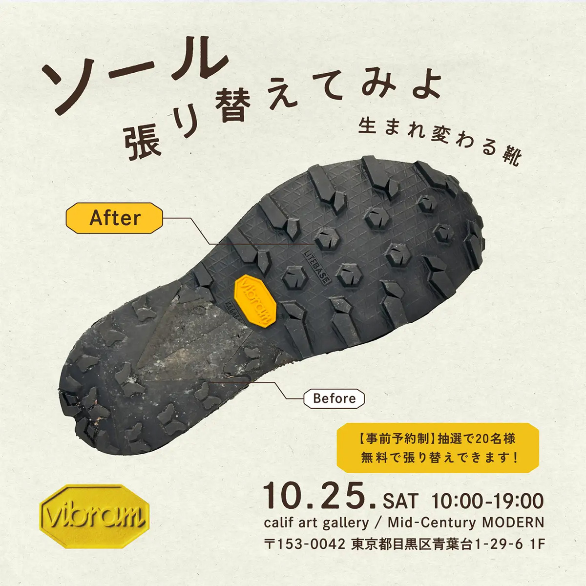 高性能ラバーソールの製造・販売を行うイタリア発の世界的ソールメーカー、ヴィブラムジャパン株式会社は、東京・中目黒で特別イベント「ソール、張り替えてみよー 生まれ変わる靴ー」を開催します。
