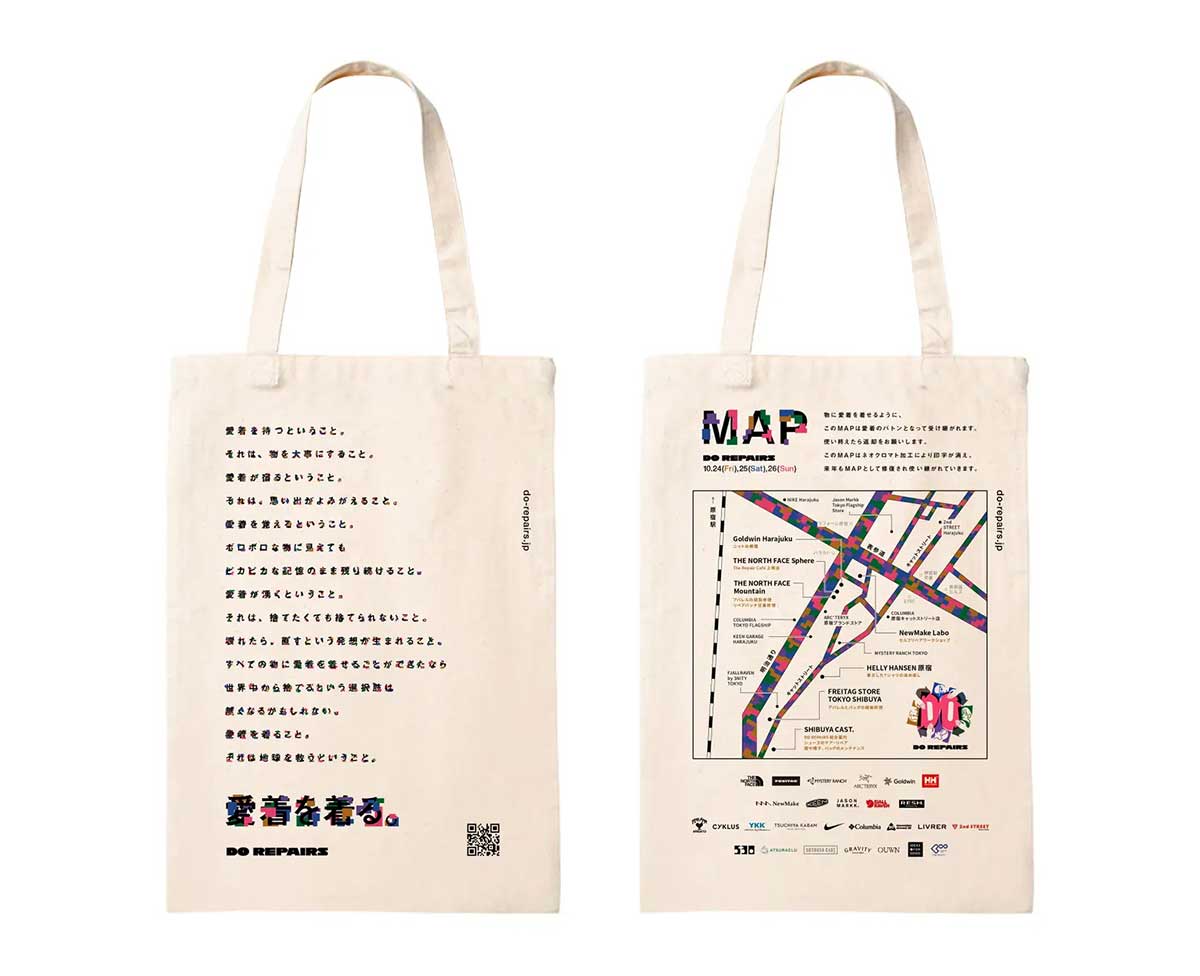 「DO REPAIRS」では参加ブランドや会場が記された布製の地図「愛着MAP」を用意。このMAPは、参加者の皆様がリペアイベント会場をめぐる“愛着のバトン”としてお渡しし、使い終えたら返却をお願いする形で展開します。ネオクロマト加工*により印字を消し、また来年のイベントMAPとして修復し、使い継いでいきます。物に愛着を着せるように、MAPもまたリペアを重ね、愛着の輪を広げていければと願っています。