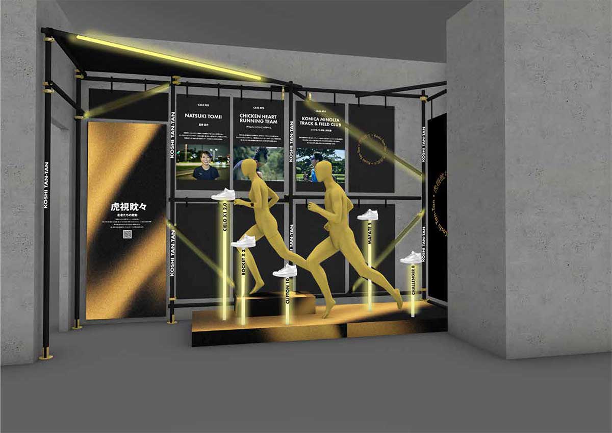 ブランドスペースは、『Together We Fly Higher』をはじめとするブランドメッセージや新商品のコンセプトを体感できるフロア。オープン時には日本発のロード&トレイルのカプセルコレクション『虎視眈々 – KOSHI TAN-TAN』を展示。