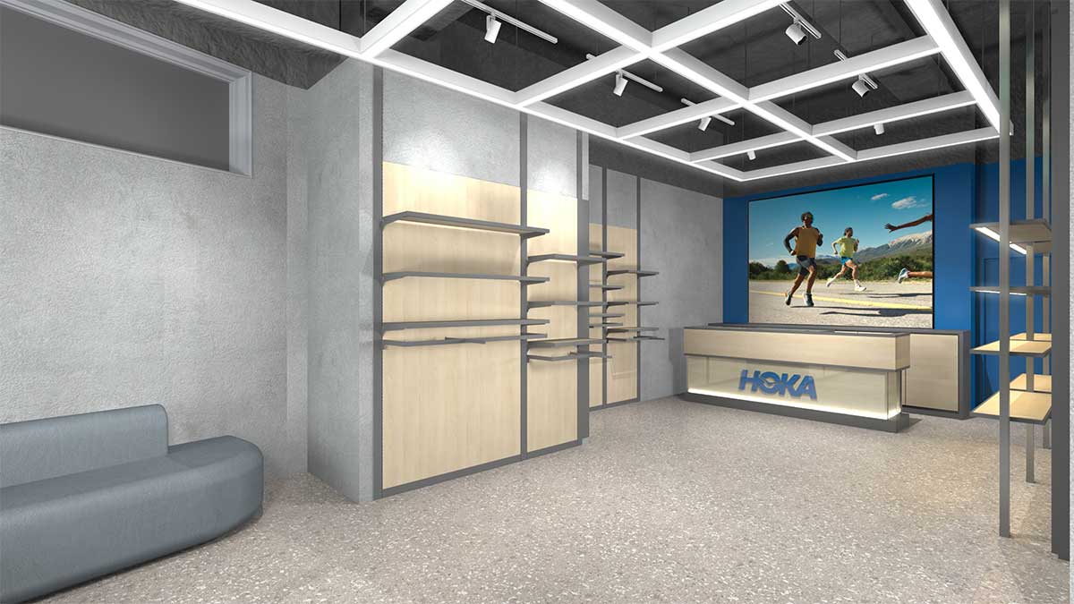 ブランドカラーのブルーを基調とし、HOKAのテクノロジーやイノベーションを体現するモダンでクリーンなデザインを採用。パフォーマンススペースとライフスタイルスペースに分かれていて、人気シューズをはじめ、パフォーマンスウェアやアクセサリーなど新作をすべて取り揃えています。ゆったりとしたスペースで快適にショッピングを楽しめます。