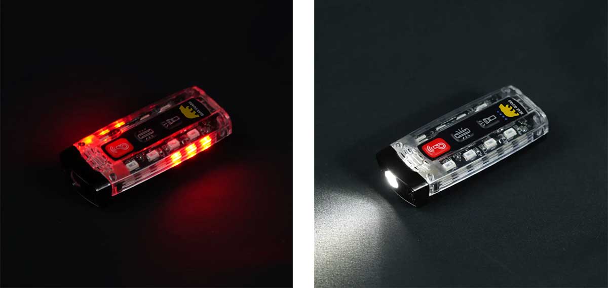 手のひらサイズのコンパクトなボディに搭載された20個の高輝度LEDが発する強力な光は、濃霧・雨天・夜間でも遠方から確認できるため、熊対策だけでなく災害・遭難時のSOS発信ツールとしても有効です。また、懐中電灯付きで緊急時にも大変便利です。