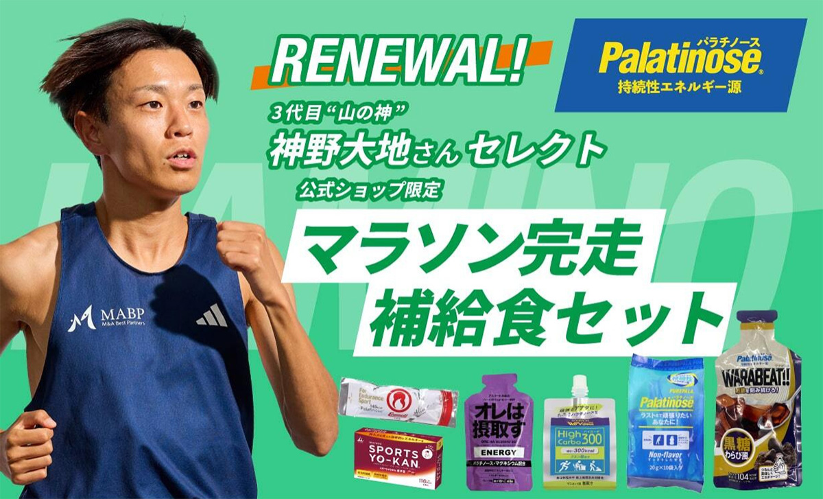 「スプーン印」「ばら印」のお砂糖でおなじみのDM三井製糖株式会社は、販売40周年を迎える「パラチノース®」のアンバサダーであり、“3代目山の神”こと神野大地氏とランニングアドバイザー三津家貴也氏がおすすめする商品を詰め合わせた「補給食セット」2種(神野大地さんセレクト パラチノースで完走補給食セット/三津家貴也さんセレクト 日々のトレーニング用補給食セット)をリニューアルし、公式オンラインショップ限定で販売開始しました。