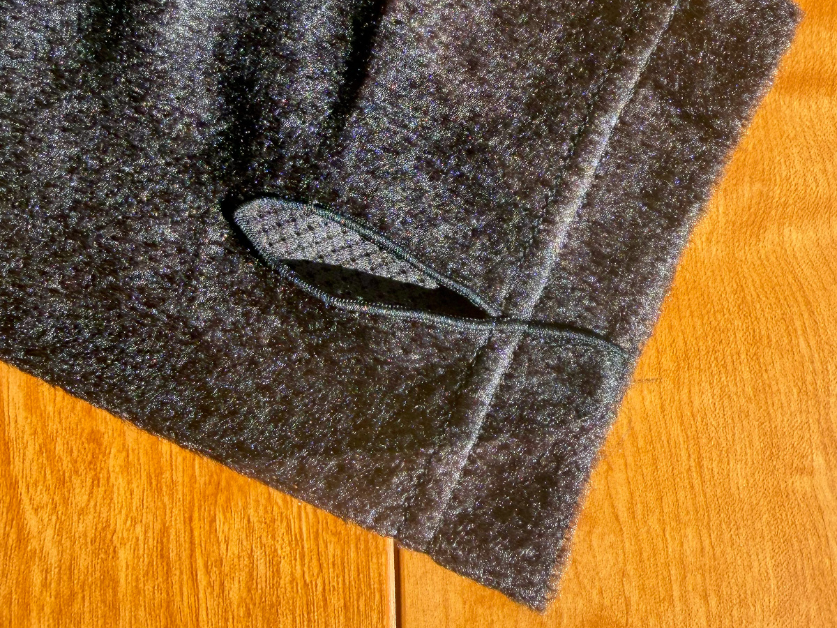 肩と肘部分にはメッシュ素材を配置し、可動域の確保と通気性の向上を図っています。これにより、腕振りの多いランニング動作や、バックパックを背負った状態でもストレスを感じにくい設計です。