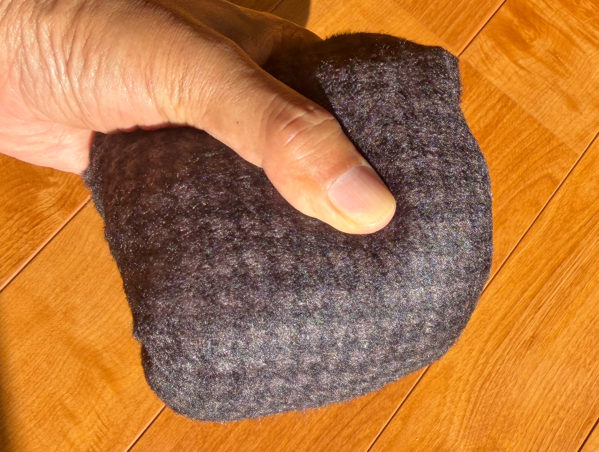 シルエットはオーバーサイズに設計されており、インナーにカットソーや薄手のフーディを重ねても窮屈さはありません。袖丈と着丈も長めに設定されているため、リラックスした雰囲気で着用できます。一方で、素材自体は非常に軽く、実際に着てみると重量感はほとんど感じられません。
