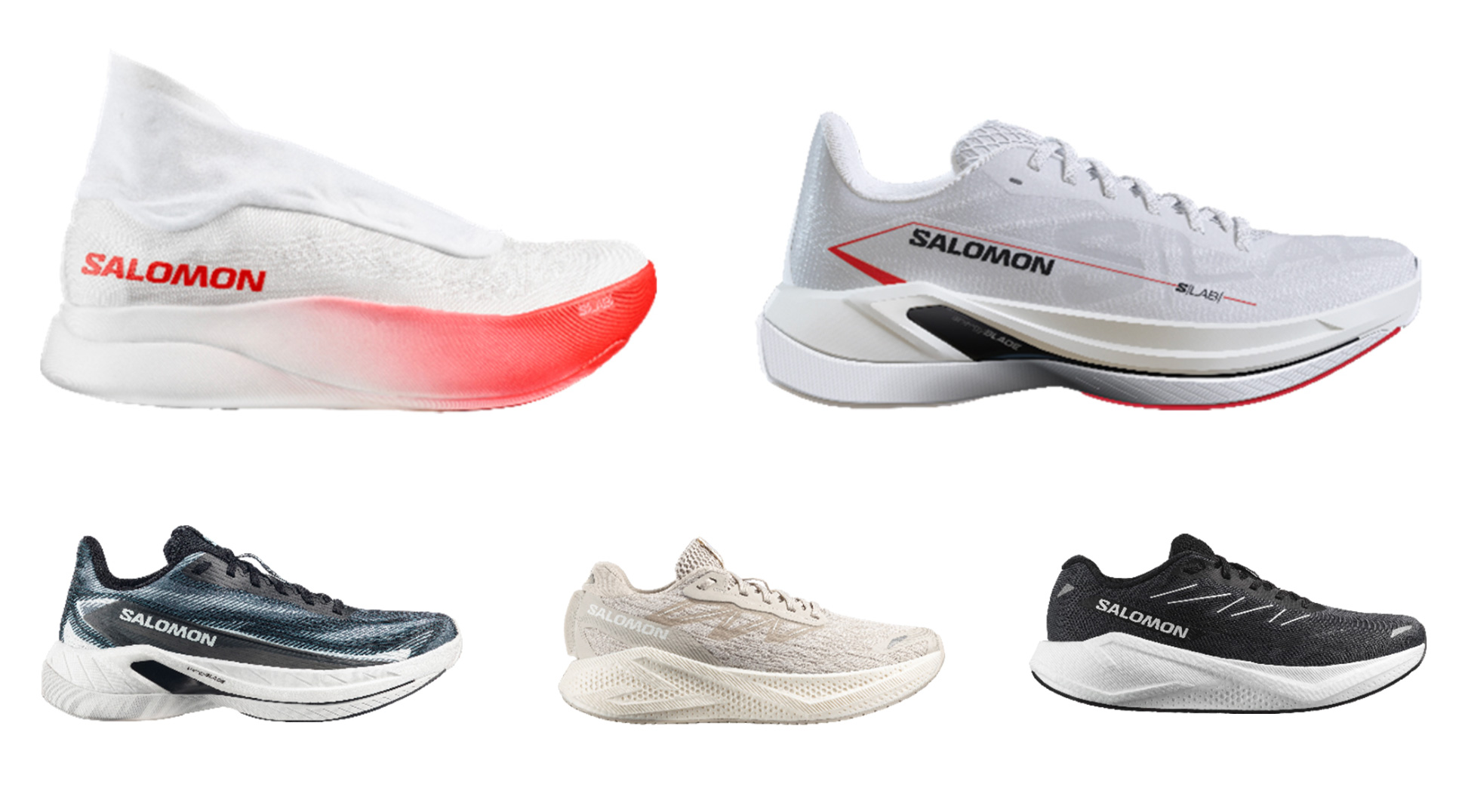 S/LAB PHANTASM 3(上段左):2026年春夏シーズン発売予定の最新ロードランニングシューズ。空気抵抗を抑えるアッパーデザインとカーボンプレートの推進力が特徴です。