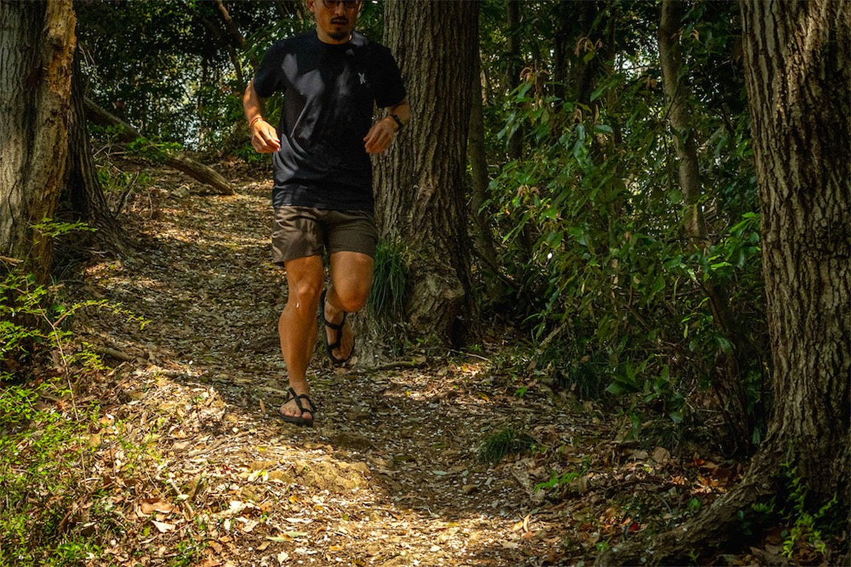 今回はシューズに先駆けリリースされるトレイルサンダルの開発秘話にフォーカス。トレイルランニングに馴染みのない方はいまいちピンとこないかもしれませんが、その界隈には“走る民族”と呼ばれるメキシコの先住民族に倣ってサンダルを用いレースやトレーニングを行う人も少なくなく、シューズ開発の始まりもプロショップからの「トレイルを攻められるサンダルを作れないか?」という声に応える形で開発がスタート。