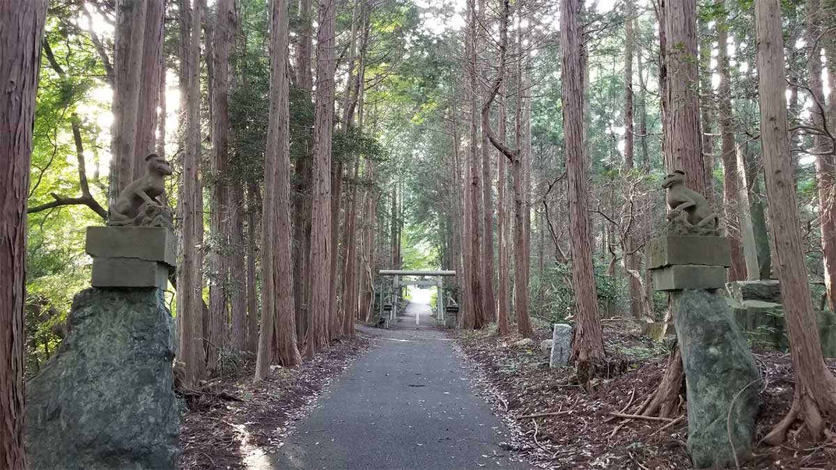 釜山神社の狼の狛犬と参道。