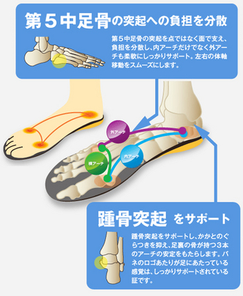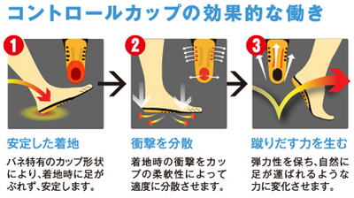 姿勢を保つための力を最小限に抑えることで、足をまっすぐ着地できるようになるので、膝や足首のケガを防ぐのにも役立ちます。また、大きな力を足にかけても、踵の位置が靴の中で動かないので、効率よく地面に力を加えられ、方向転換やダッシュなどで効果を発揮します。