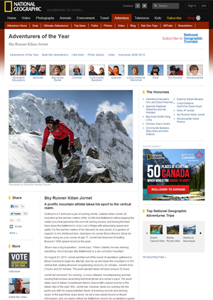 (1888年創刊、世界850万部)が公式サイト内で"Adventurers of the Year"を選出するための投票を行っています。