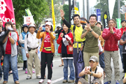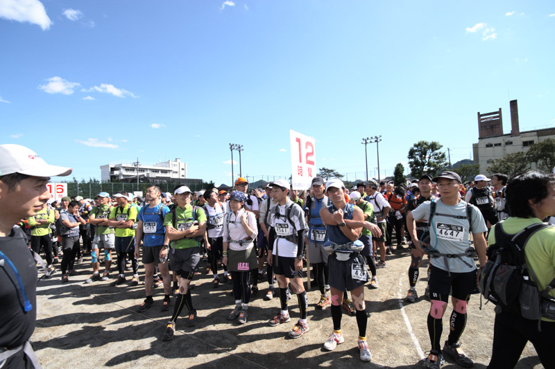 開会式は中学校の校庭。大会会長や市の関係者などが挨拶をしている間も、スタート場所を決めあぐねている選手がいました。