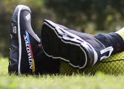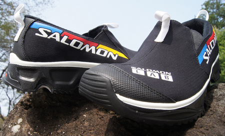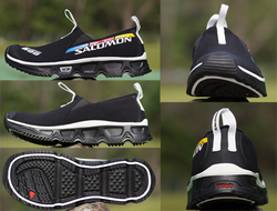 機能以外での注目はなんといってもトップアスリート専用ギアである「S-LAB」のロゴ。ご存知のとおり、サロモンアスリートがレースやトレーニングの後に履いて、疲れた足をリラックスさせるシューズということです。「S-LAB」は、あのキリアン選手も開発に携わっており、気分的にもトップアスリートになったような満足感を得ることができます。ちなみに「S-LAB」のロゴは「RX スノーモック」のブラック/ブラック/ホワイトというカラーとメッシュタイプの「RX S-LAB」にのみつけられています。
